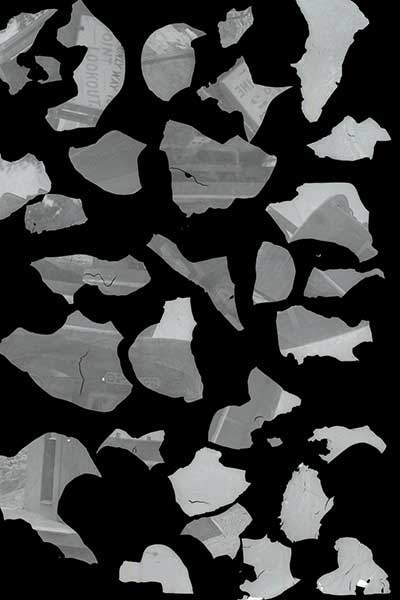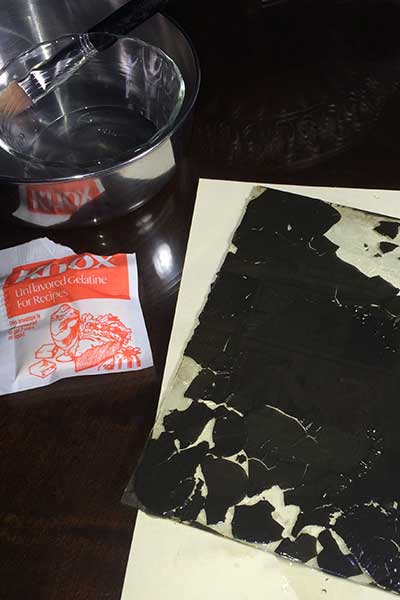 A very dilute solution of plain gelatin was used to adhere the pieces to a new piece of glass - stabilizing them for scanning and future preservation.
