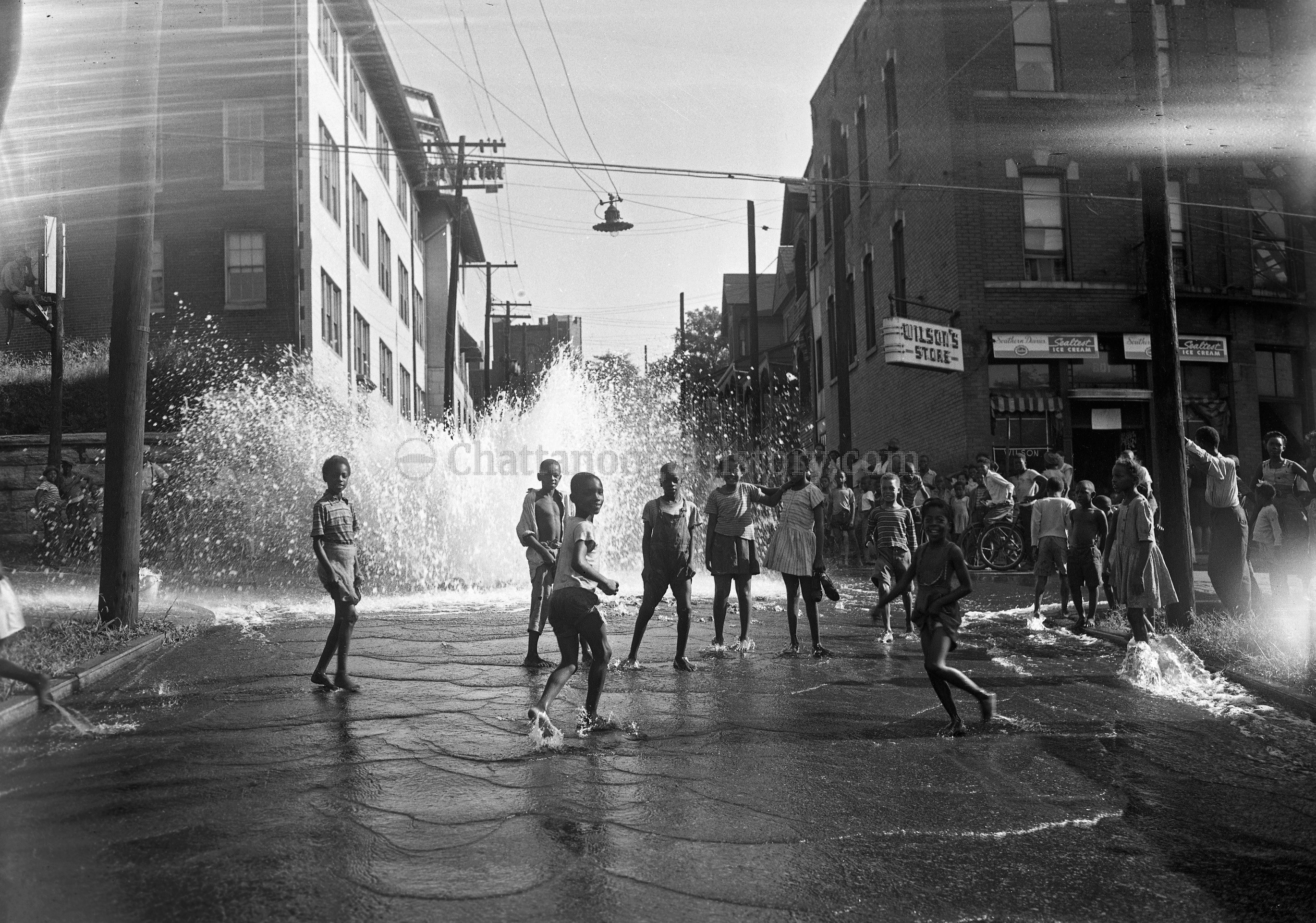 In a burst of late-summer bliss, children in 1947 streamed into the intersection of Douglas and East Eighth streets in Chattanooga after a water main was accidentally punctured by a worker.